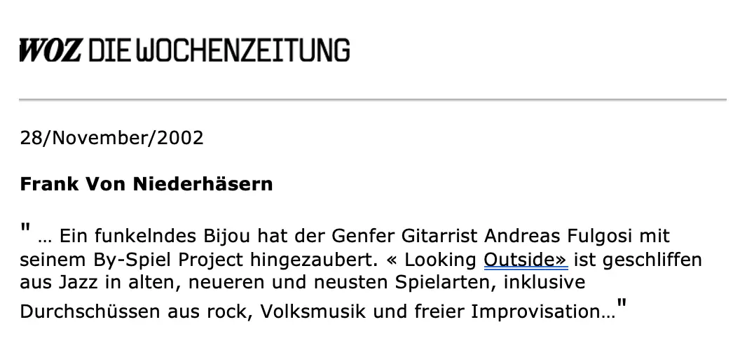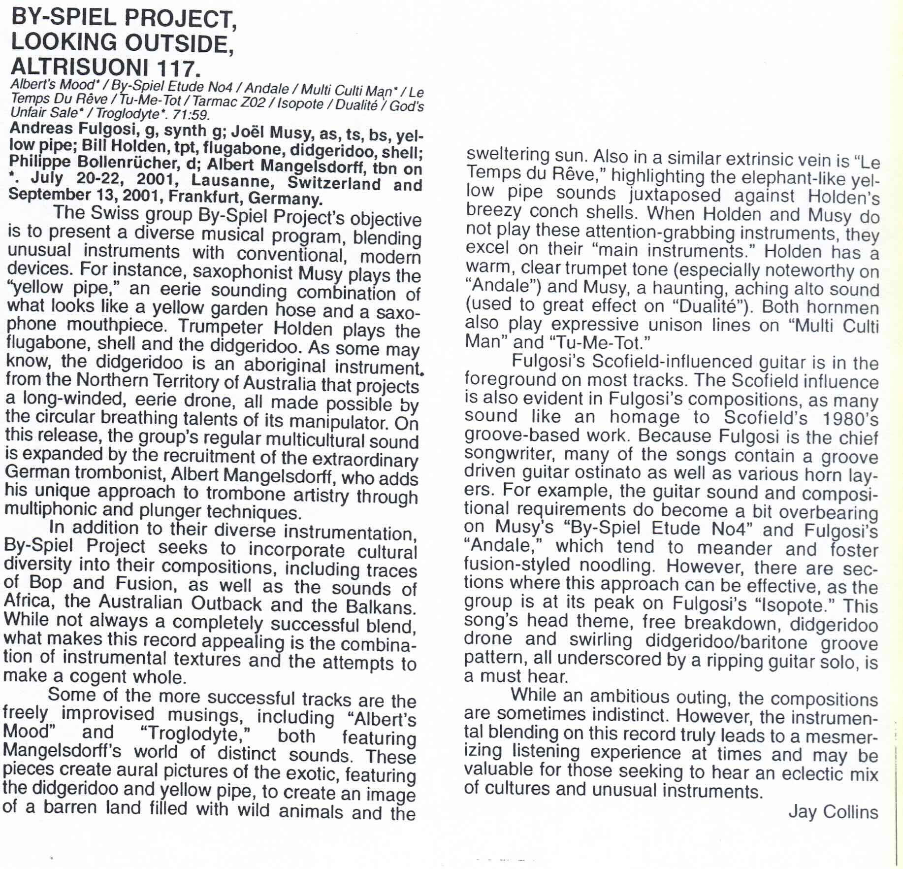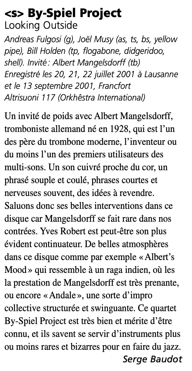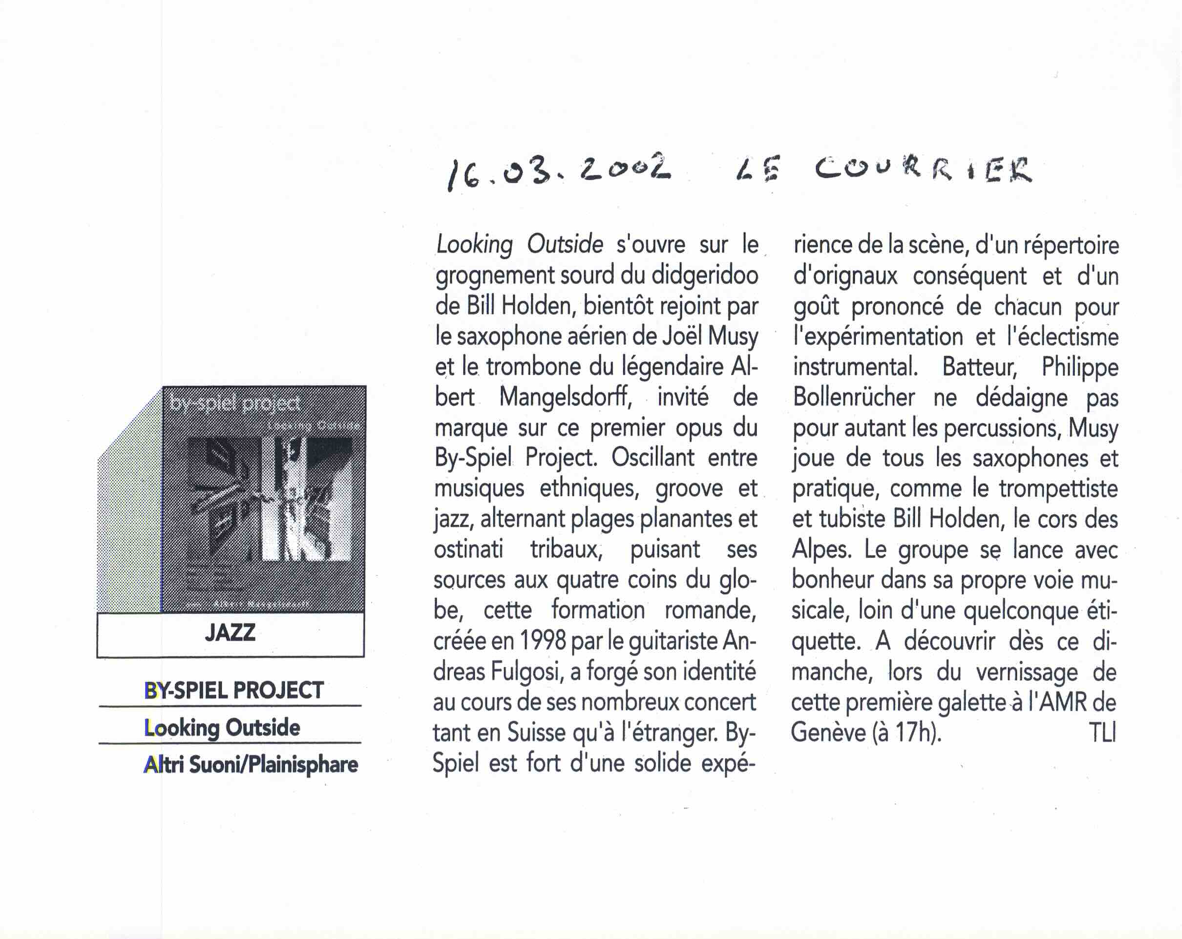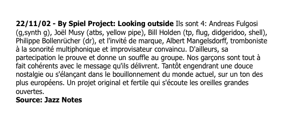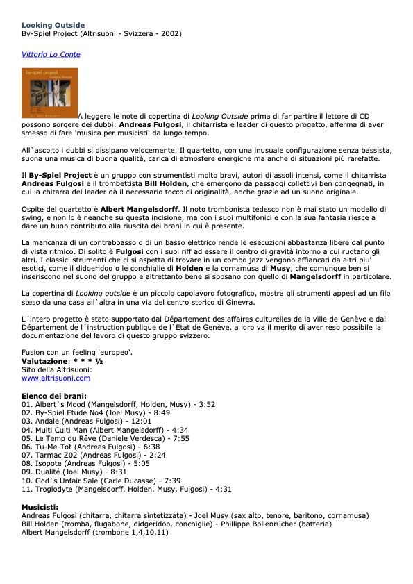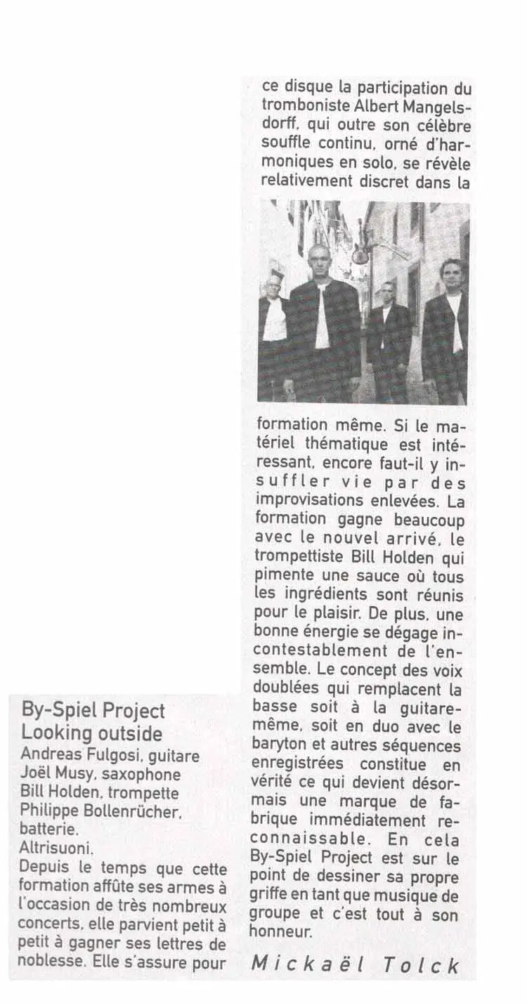 - By-Spiel Project CD critic « Lokking Outside » Viva La Musica- April 2002
