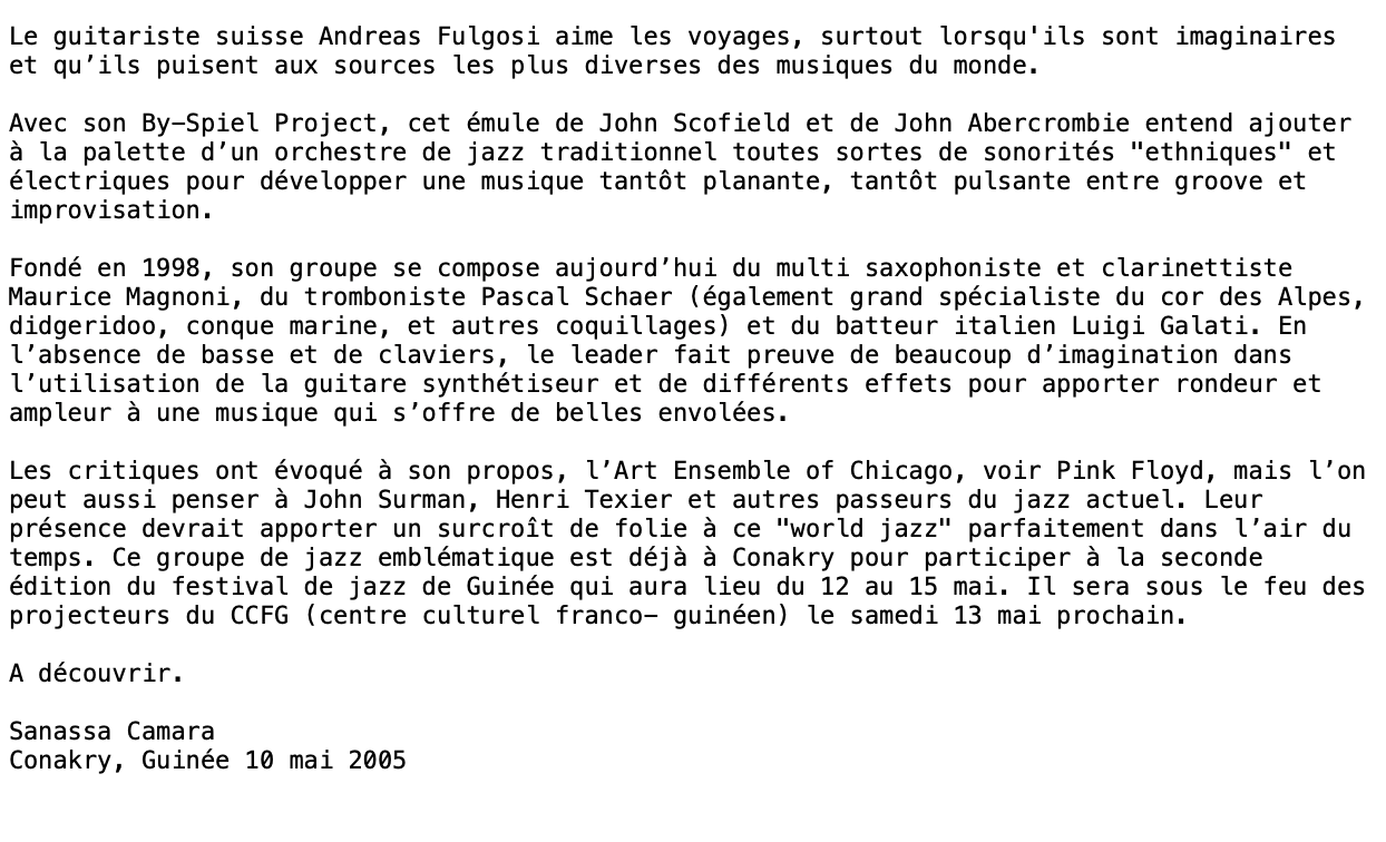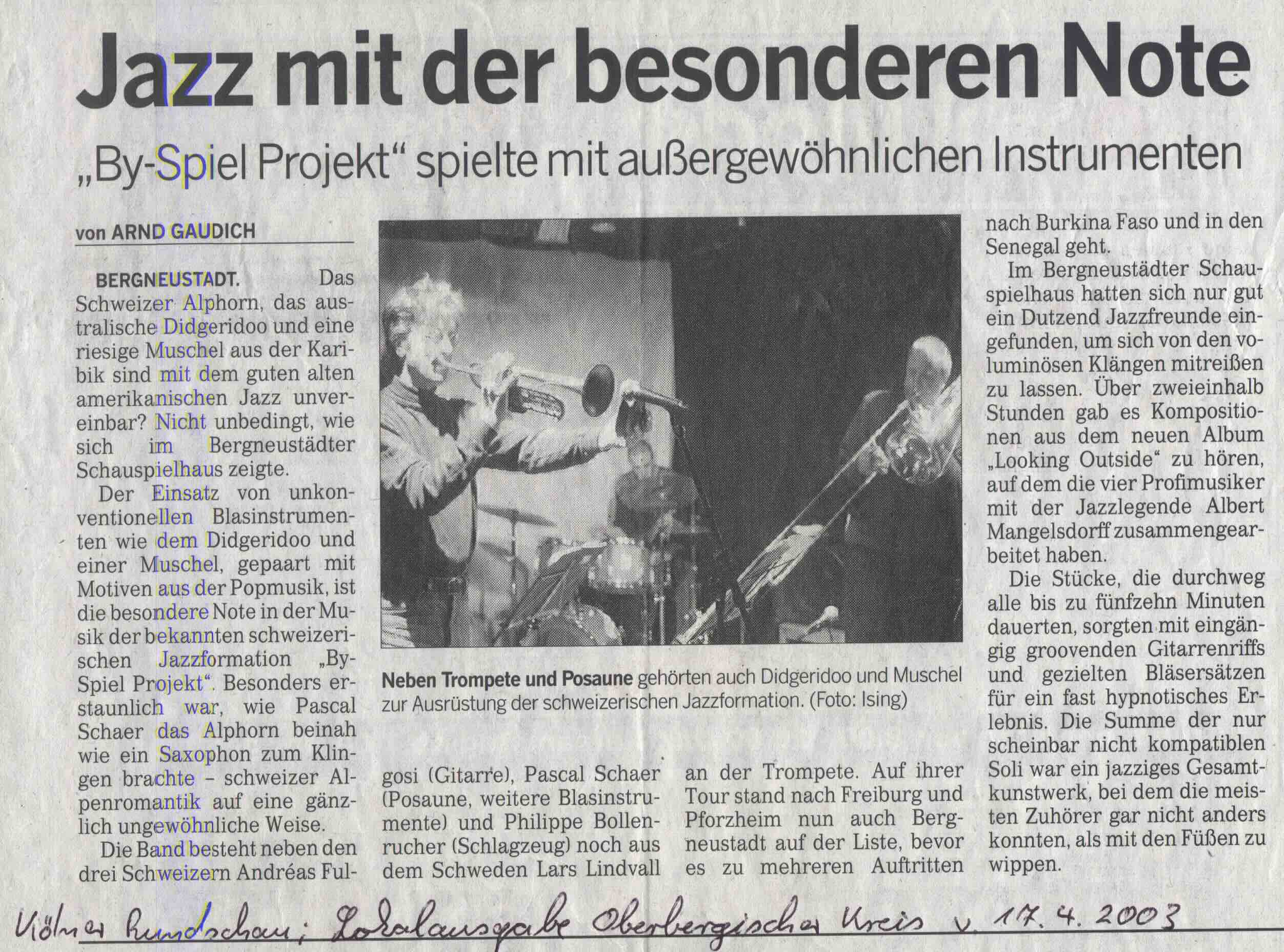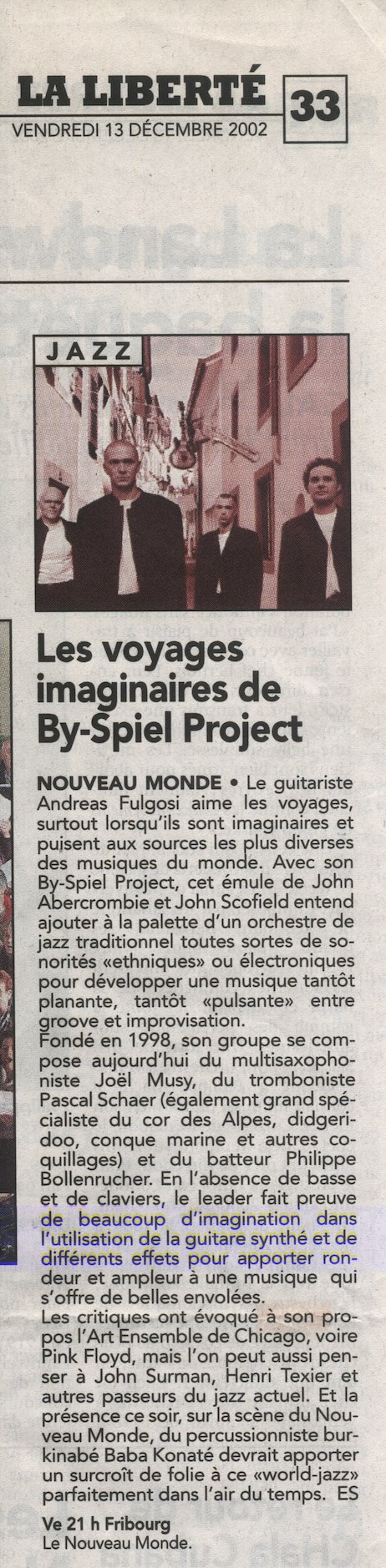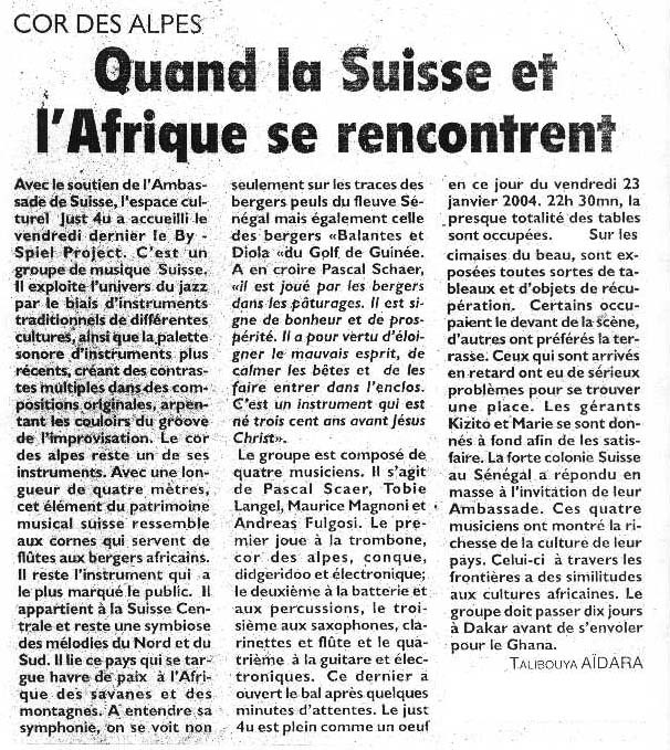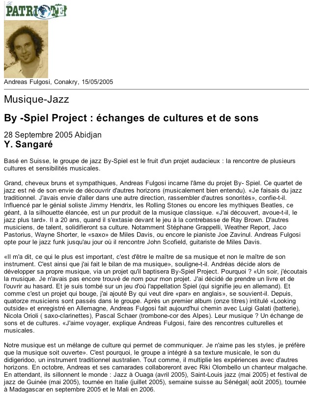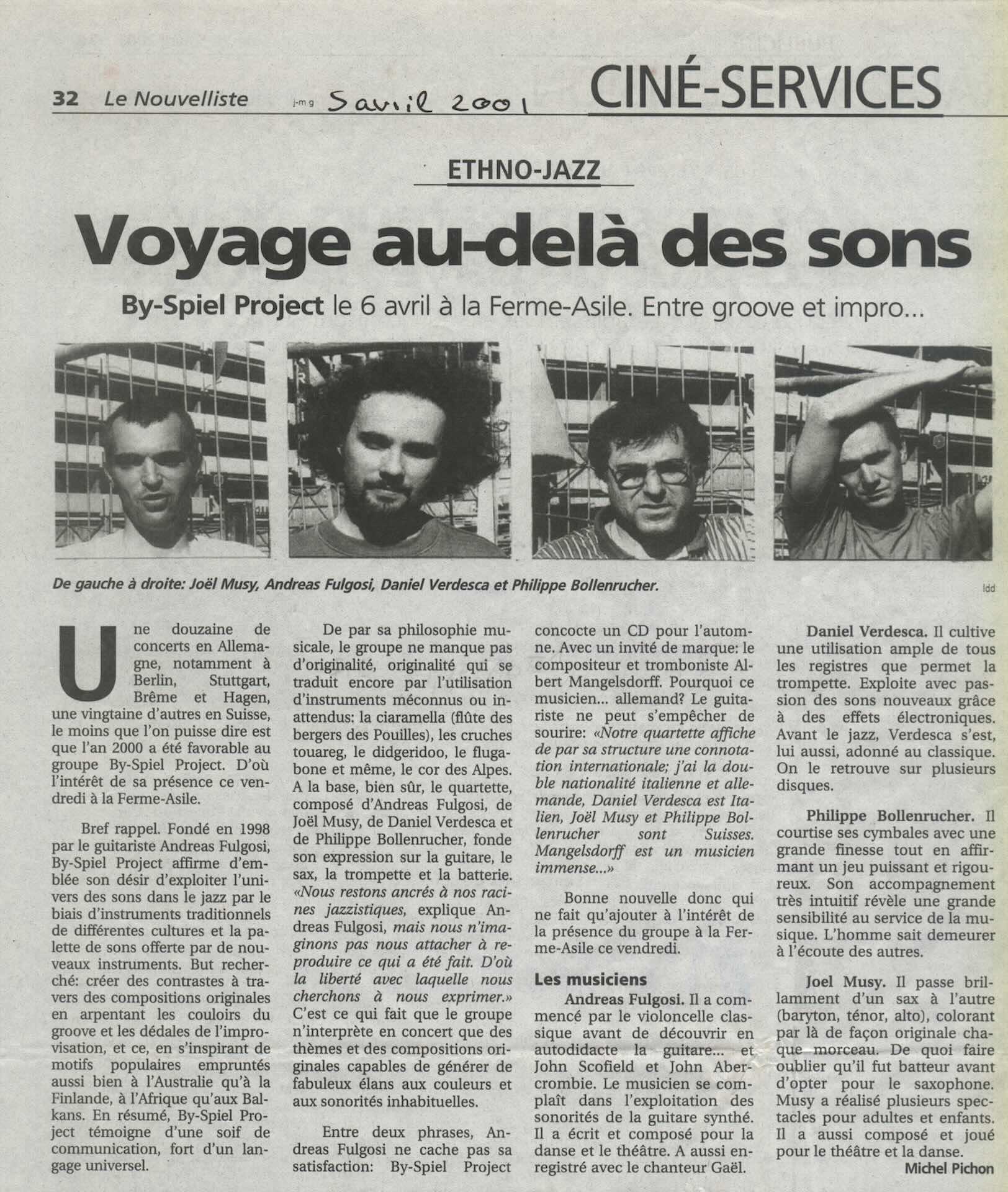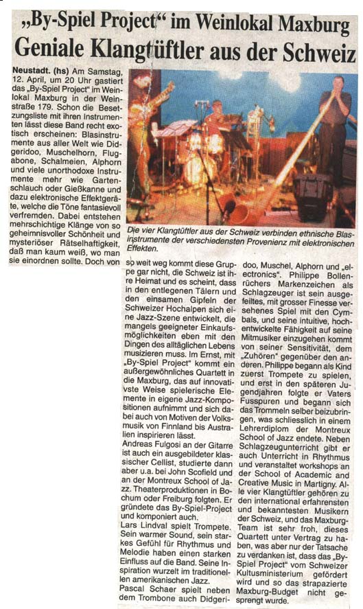 - By-Spiel Project CD critic « Lokking Outside » Viva La Musica- April 2002