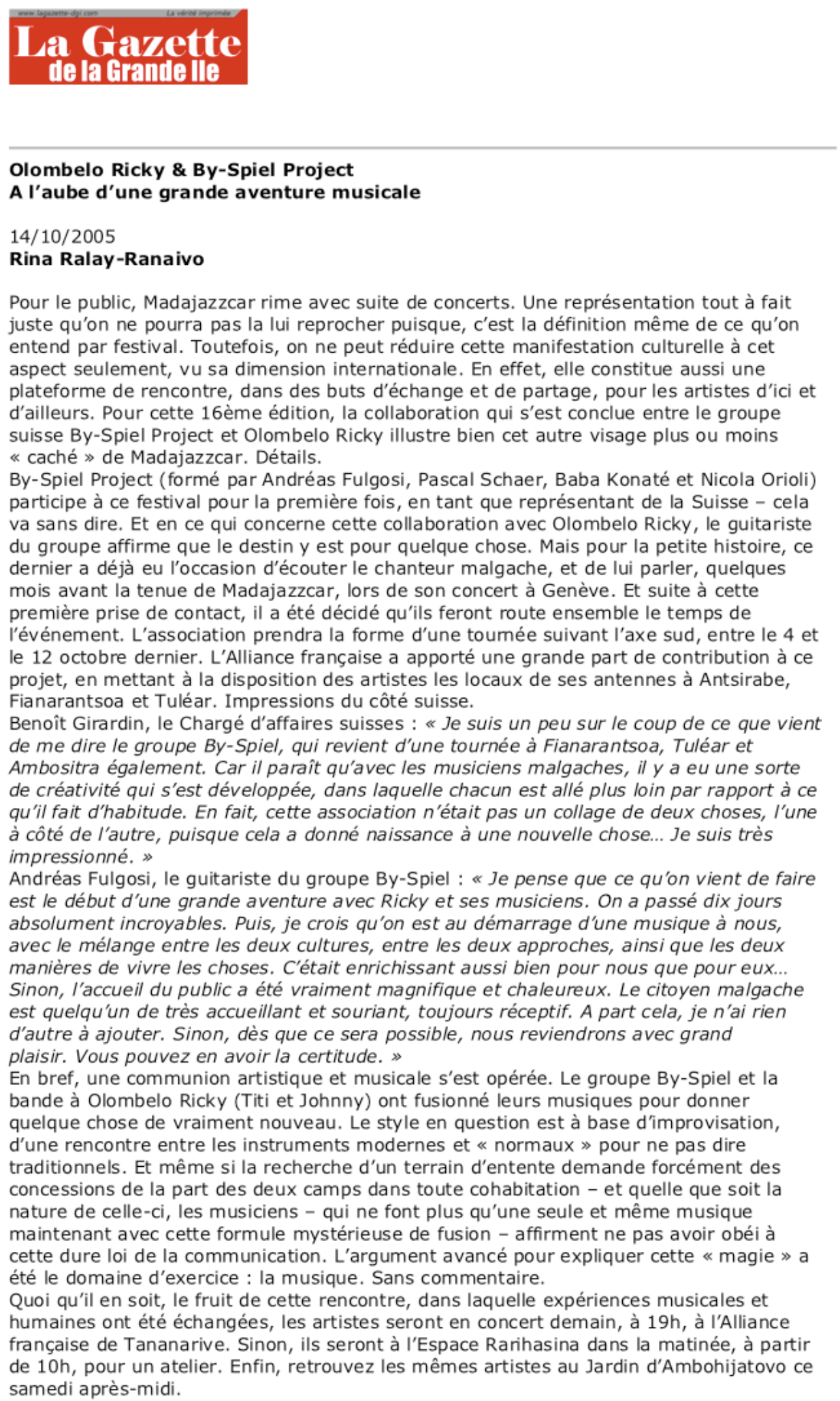 - La Gazette de la Grande île /Madajazzcar
