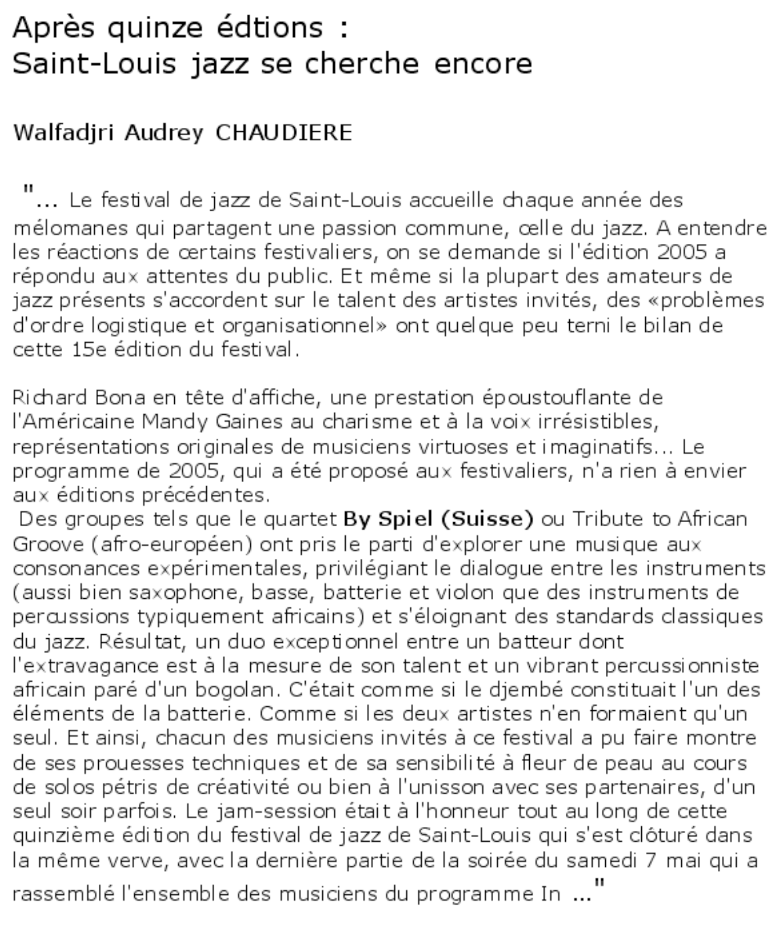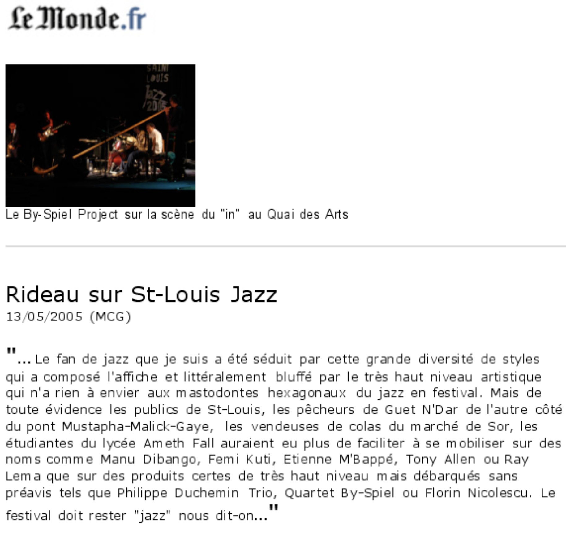 - Le Monde, Saint-Louis Jazzfestival, Sénégal