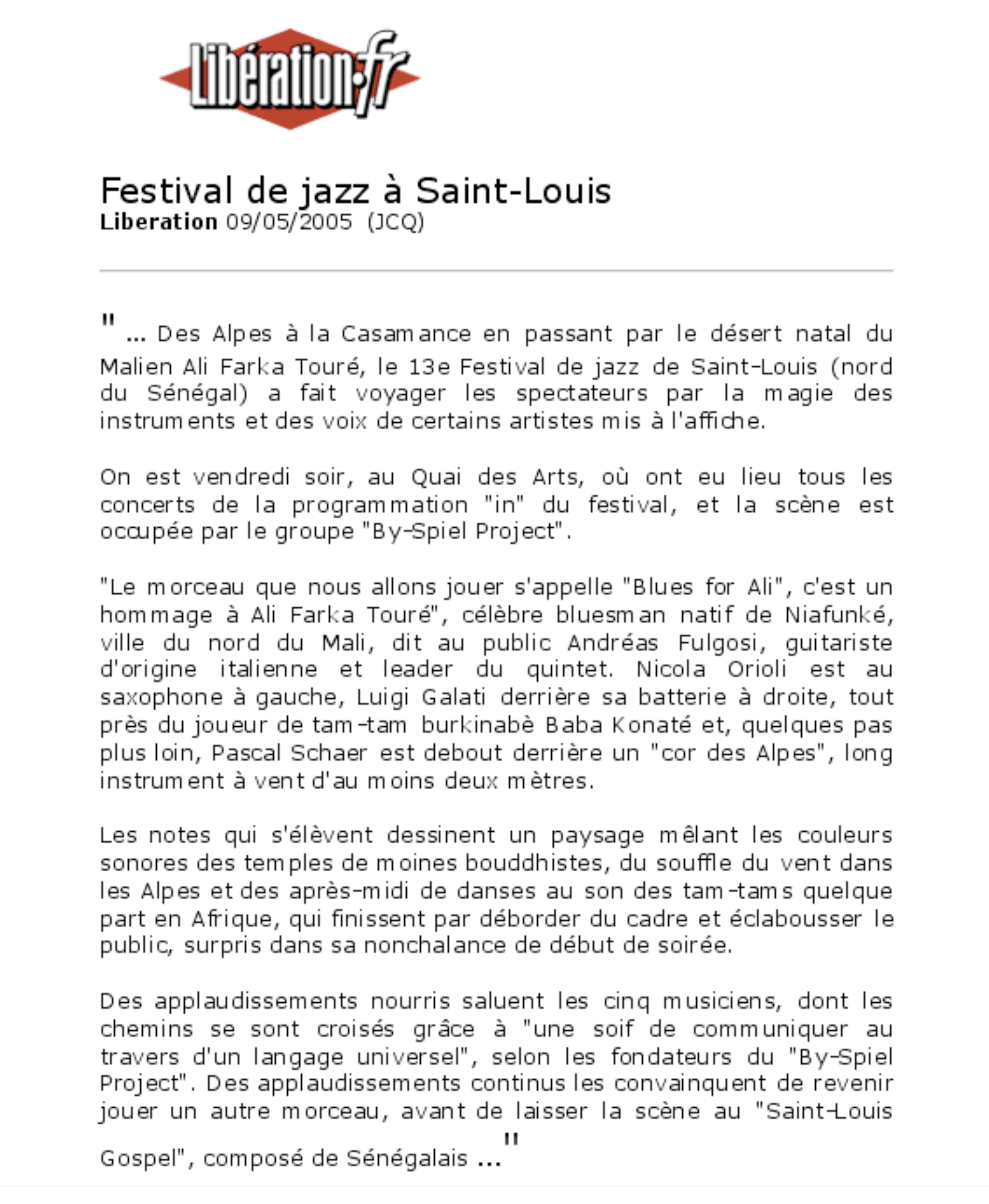 - Libération, Saint-Louis Jazzfestival, Senegal